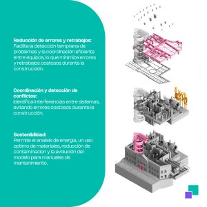 El uso de Building Information Modeling (BIM) ofrece numerosas ventajas que abarcan desde la fase de diseño hasta la operación del edificio, mejorando la eficiencia, la colaboración y la calidad en proyectos de construcción.